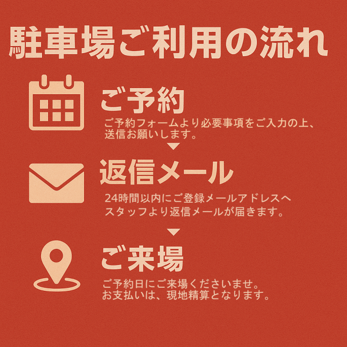 駐車場のご予約は、ご予約フォームより、必要事項入力の上、送信お願いします。